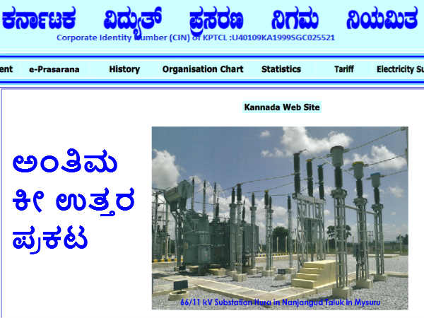 ಕರ್ನಾಟಕ ವಿದ್ಯುತ್ ಪ್ರಸರಣ ನಿಗಮವು ವಿವಿಧ ಹುದ್ದೆಗಳ ನೇಮಕಾತಿಗೆ ನಡೆಸಿದ್ದ ಪರೀಕ್ಷೆಯ ಅಂತಿಮ ಉತ್ತರಗಳ ಕೀ, ಅಂಕಗಳನ್ನು ಪ್ರಕಟಿಸಿದೆ.