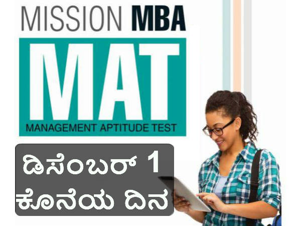 ಮ್ಯಾನೇಜ್ಮೆಂಟ್ ಆಪ್ಟಿಟ್ಯೂಡ್ ಟೆಸ್ಟ್ (MAT-ಮ್ಯಾಟ್)-2017 ಪರೀಕ್ಷೆಗೆ ಅರ್ಜಿ ಸಲ್ಲಿಸಲು ಡಿಸೆಂಬರ್ 1 ಕೊನೆಯ ದಿನವಾಗಿದೆ.