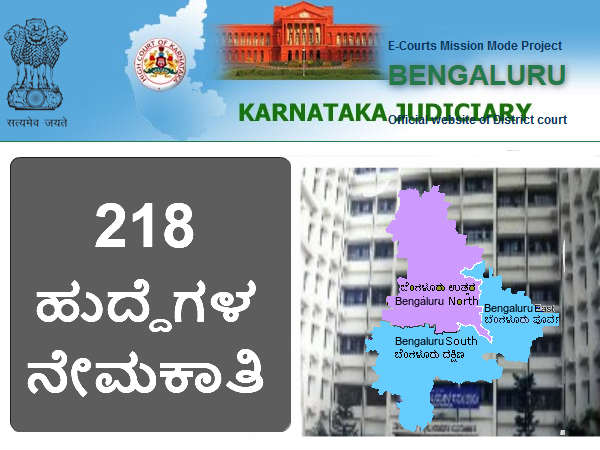 ಬೆಂಗಳೂರು ನಗರ ಸಿವಿಲ್ ನ್ಯಾಯಾಲಯ ಘಟಕದಲ್ಲಿ ಶೀಘ್ರಲಿಪಿಗಾರ, ಬೆಳಚ್ಚುಗಾರ, ಬೆರಳಚ್ಚು ನಕಲುಗಾರ ಮತ್ತು ಜವಾನರ ಹುದ್ದೆಗಳ ನೇಮಕಾತಿಗೆ ಅರ್ಜಿ ಆಹ್ಚಾನಿಸಲಾಗಿದೆ.