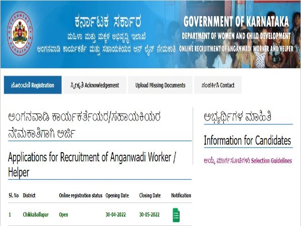 ಚಿಕ್ಕಬಳ್ಳಾಪುರ ಜಿಲ್ಲೆಯ ೬ ಶಿಶು ಅಭಿವೃದ್ಧಿ ಯೋಜನೆಗಳ ವ್ಯಾಪ್ತಿಯಲ್ಲಿ ಕಾರ್ಯನಿರ್ವಹಿಸುತ್ತಿರುವ ಅಂಗನವಾಡಿ ಕೇಂದ್ರಗಳಲ್ಲಿ ಖಾಲಿ ಇರುವ 3 ಮಿನಿ ಅಂಗನವಾಡಿ ಕಾರ್ಯಕರ್ತೆ, 3 ಅಂಗನವಾಡಿ ಕಾರ್ಯಕರ್ತೆ ಮತ್ತು 70 ಅಂಗನವಾಡಿ ಸಹಾಯಕಿಯರ ಸೇರಿದಂತೆ ಒಟ್ಟು 76 ಹುದ್ದೆಗಳನ್ನು ನೇಮಕ ಮಾಡಲು ಅರ್ಹ ಮಹಿಳಾ ಅಭ್ಯರ್ಥಿಗಳಿಂದ ಆನ್ಲೈನ್ ಮೂಲಕ ಅರ್ಜಿಗಳನ್ನು ಆಹ್ವಾನಿಸಲಾಗಿದೆ.