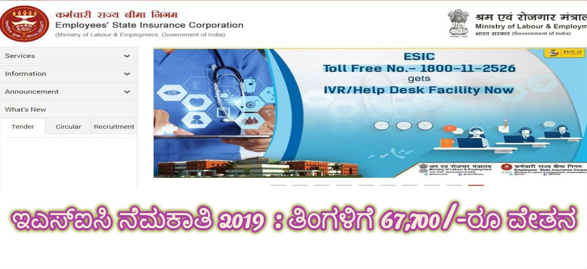 | Organisation | ರಾಜ್ಯ ನೌಕರರ ವಿಮಾ ನಿಗಮ ( ಇಎಸ್ಐಸಿ ಕರ್ನಾಟಕ) |