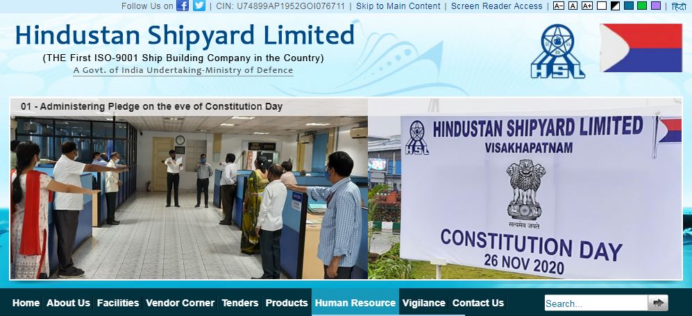 ಹಿಂದೂಸ್ಥಾನ್ ಶಿಪ್ಯಾರ್ಡ್ ಲಿಮಿಟೆಡ್ (ಹೆಚ್ಎಸ್ಎಲ್) 26 ಮ್ಯಾನೇಜರ್, ಕನ್ಸಲ್ಟೆಂಟ್ ಮತ್ತು ಆಫೀಸರ್ ಹುದ್ದೆಗಳನ್ನು ಭರ್ತಿ ಮಾಡಲು ಅರ್ಜಿ ಆಹ್ವಾನಿಸಿದೆ. ಆಸಕ್ತರು ಅನ್ಲೈನ್ ಮೂಲಕ ಜನವರಿ 8,2021ರೊಳಗೆ ಅರ್ಜಿಯನ್ನು ಸಲ್ಲಿಸಬಹುದು. ಹುದ್ದೆಗಳಿಗೆ ಕೇಳಲಾಗಿರುವ ಅರ್ಹತೆಗಳ ಬಗ್ಗೆ ತಿಳಿಯಲು ಮುಂದೆ ಓದಿ.