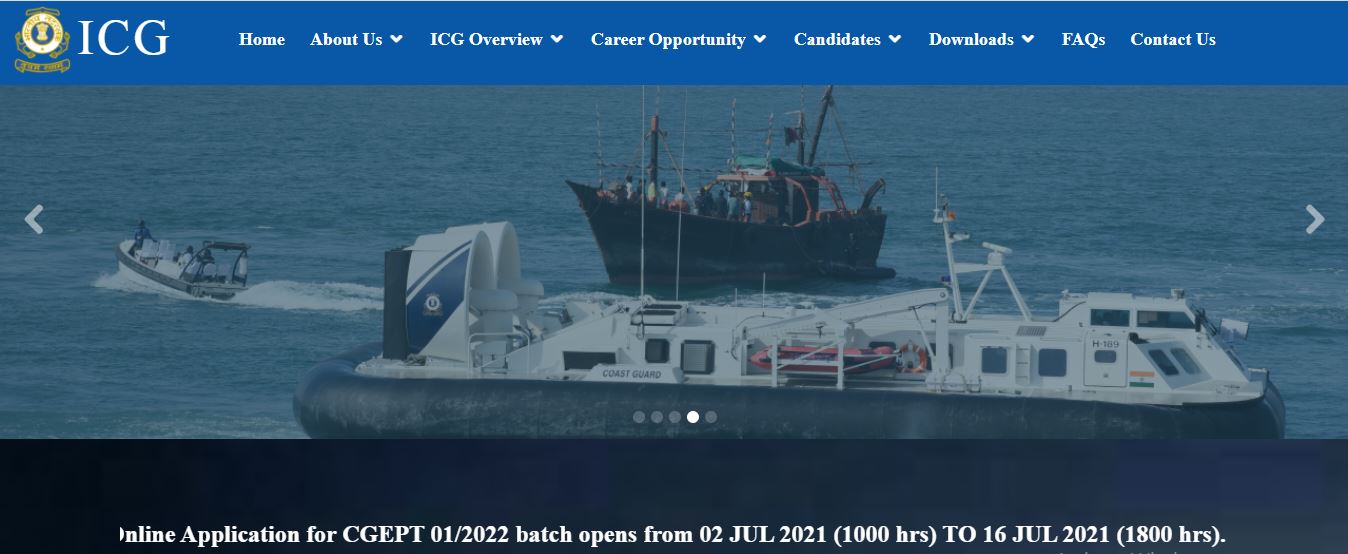 ಭಾರತೀಯ ಕೋಸ್ಟ್ ಗಾರ್ಡ್ ನಲ್ಲಿ 350 ನಾವಿಕ ಮತ್ತು ಯಾಂತ್ರಿಕ ಹುದ್ದೆಗಳನ್ನು ಭರ್ತಿ ಮಾಡಲು ಅರ್ಜಿ ಆಹ್ವಾನಿಸಲಾಗಿದೆ. ಆಸಕ್ತರು ಆನ್ಲೈನ್ ಮೂಲಕ ಜುಲೈ 2 ರಿಂದ ಜುಲೈ 16,2021ರ ಸಂಜೆ 6 ಗಂಟೆಯೊಳಗೆ ಅರ್ಜಿಯನ್ನು ಸಲ್ಲಿಸಬಹುದು.