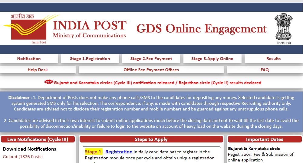 ಆಸಕ್ತ ಅಭ್ಯರ್ಥಿಗಳು ಆನ್ಲೈನ್ ನಲ್ಲಿ ಅಧಿಕೃತ ವೆಬ್ಸೈಟ್ http://www.appost.in/gdsonline/home.aspx ಗೆ ಭೇಟಿ ನೀಡಿ. ಅಲ್ಲಿ ಕೇಳಲಾಗಿರುವ ಮಾಹಿತಿಯನ್ನು ಭರ್ತಿ ಮಾಡುವ ಮೂಲಕ ಜನವರಿ 20,2021ರೊಳಗೆ ಅರ್ಜಿಯನ್ನು ಸಲ್ಲಿಸಬಹುದು.