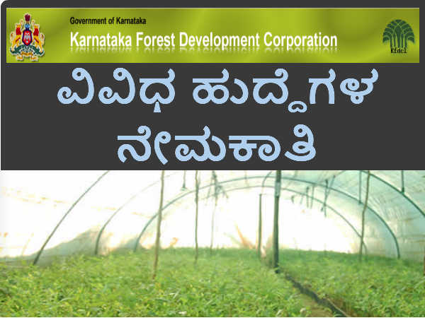 ಕರ್ನಾಟಕ ಅರಣ್ಯ ಅಭಿವೃದ್ದಿ ನಿಗಮದಲ್ಲಿ ಬ್ಯಾಕ್ ಲಾಗ್ ಹುದ್ದೆಗಳ ಭರ್ತಿ ಮಾಡಲು ಅರ್ಜಿಗಳನ್ನು ಆಹ್ವಾನಿಸಲಾಗಿದೆ.