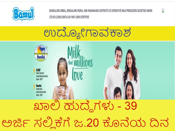 ವಿಜಯಪುರ ಮತ್ತು ಬಾಗಲಕೋಟೆ ಜಿಲ್ಲಾ ಸಹಕಾರ ಹಾಲು ಉತ್ಪಾದಕರ ಸಂಘಗಳ ಒಕ್ಕೂಟ ನಿ., ವಿಜಯಪುರದಲ್ಲಿ ಖಾಲಿ ಇರುವ 39 ವಿವಿಧ ಹುದ್ದೆಗಳನ್ನು ಭರ್ತಿ ಮಾಡಲು ಅರ್ಜಿ ಆಹ್ವಾನಿಸಲಾಗಿದೆ.