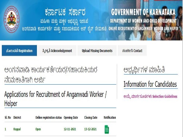 ಕೊಪ್ಪಳ ಜಿಲ್ಲೆಯ ಮಹಿಳಾ ಮತ್ತು ಮಕ್ಕಳ ಅಭಿವೃದ್ಧಿ ಇಲಾಖೆಯಡಿ ಕಾರ್ಯನಿರ್ವಹಿಸುತ್ತಿರುವ 5 ಶಿಶು ಅಭಿವೃದ್ಧಿ ಯೋಜನೆ ವ್ಯಾಪ್ತಿಯಲ್ಲಿ ಬರುವ ಅಂಗನವಾಡಿ ಕೇಂದ್ರಗಳಲ್ಲಿ ಖಾಲಿ ಇರುವ 28 ಅಂಗನವಾಡಿ ಕಾರ್ಯಕರ್ತೆ ಮತ್ತು 133 ಅಂಗನವಾಡಿ ಸಹಾಯಕಿಯರ ಸೇರಿದಂತೆ ಒಟ್ಟು 161 ಹುದ್ದೆಗಳನ್ನು ನೇಮಕ ಮಾಡಲು ಅರ್ಹ ಮಹಿಳಾ ಅಭ್ಯರ್ಥಿಗಳಿಂದ ಆನ್ಲೈನ್ ಮೂಲಕ ಅರ್ಜಿಗಳನ್ನು ಆಹ್ವಾನಿಸಲಾಗಿದೆ.