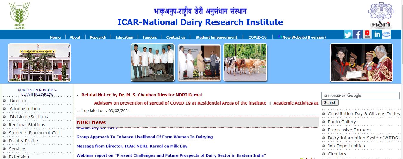 ನ್ಯಾಷನಲ್ ಡೈರಿ ರಿಸರ್ಚ್ ಇನ್ಸ್ಟಿಟ್ಯೂಟ್ (ಎನ್ಡಿಆರ್ಐ) 3 ಎಕ್ಸಿಕ್ಯುಟಿವ್ ಮತ್ತು ಸಿಇಓ ಹುದ್ದೆಗಳನ್ನು ಭರ್ತಿ ಮಾಡಲು ಅರ್ಜಿ ಆಹ್ವಾನಿಸಲಾಗಿದೆ. ಆಸಕ್ತರು ಮಾರ್ಚ್ 4,2021ರೊಳಗೆ ಅರ್ಜಿಯನ್ನು ಸಲ್ಲಿಸಬಹುದು.