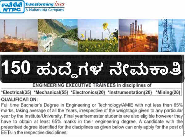 ದೇಶದ ಅತಿದೊಡ್ಡ ವಿದ್ಯುತ್ ಉತ್ಪಾದನಾ ಸಂಸ್ಥೆಯಾದ ಎನ್ಟಿಪಿಸಿ ಇಂಜಿನಿಯರಿಂಗ್ ಎಕ್ಸಿಕ್ಯೂಟಿವ್ ಟ್ರೈನಿಗಳ ನೇಮಕಾತಿಗೆ ಅರ್ಜಿಗಳನ್ನು ಆಹ್ವಾನಿಸಿದೆ.