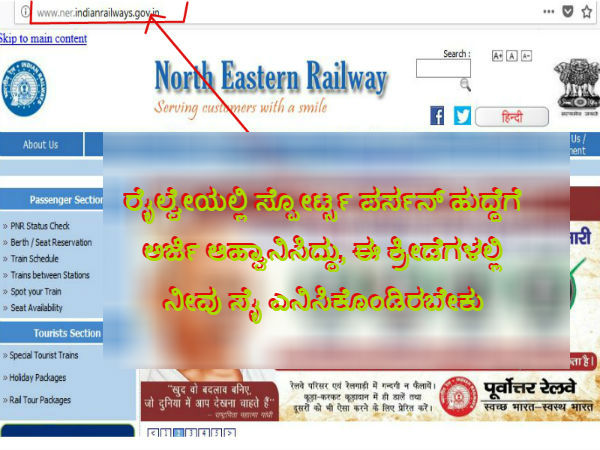 ಈಶಾನ್ಯ ರೈಲ್ವೇ ಆಫೀಶಿಯಲ್ ಸೈಟ್ಗೆ ವಿಸಿಟ್ ಮಾಡಿ http://www.ner.indianrailways.gov.in/