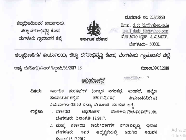 ಅಧಿಸೂಚನೆ ಪ್ರತಿಯನ್ನು ಹಾಗೂ ನಿಗಧಿತ ಅರ್ಜಿ ನಮೂನೆಯನ್ನು ಸಂಬಂಧಿಸಿದ ಪುರಸಭೆಗಳಿಂದ ಪಡೆಯ ಬೇಕು