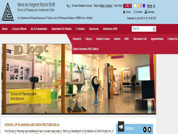 | Organisation | ಸ್ಕೂಲ್ ಆಫ್ ಪ್ಲ್ಯಾನಿಂಗ್ ಮತ್ತು ಆರ್ಕಿಟೆಕ್ಚರ್ |