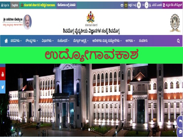 ಶಿವಮೊಗ್ಗ ವೈದ್ಯಕೀಯ ವಿಜ್ಞಾನಗಳ ಸಂಸ್ಥೆಯಲ್ಲಿ ವಿವಿಧ ಹುದ್ದೆಗಳನ್ನು ಭರ್ತಿ ಮಾಡಲು ಅರ್ಜಿ ಆಹ್ವಾನಿಸಲಾಗಿದೆ. ಆಸಕ್ತರು ನೇಮಕಾತಿ ಅಧಿಸೂಚನೆ 2021 ಅನ್ನು ಓದಿಕೊಂಡು ಅರ್ಜಿಯನ್ನು ಹಾಕಬಹಬುದು.