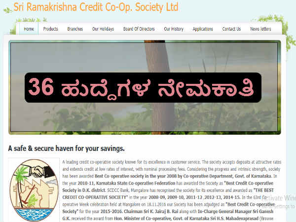 ಶ್ರೀ ರಾಮಕೃಷ್ಣ ಕ್ರೆಡಿಟ್ ಕೋ-ಆಪರೇಟಿವ್ ಸೊಸೈಟಿ ಲಿ, ಮಂಗಳೂರು, ಅರ್ಹ ಅಭ್ಯರ್ಥಿಗಳಿಂದ ವಿವಿಧ ಹುದ್ದೆಗಳಿಗೆ ನಿಗದಿತ ನಮೂನೆಗಳಲ್ಲಿ ಅರ್ಜಿಗಳನ್ನು ಆಹ್ವಾನಿಸಿದೆ.