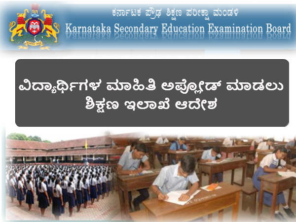 ರಾಜ್ಯದ ಎಲ್ಲ ಸರ್ಕಾರಿ ಮತ್ತು ಮಾನ್ಯತೆ ಪಡೆದಿರುವ ಖಾಸಗಿ ಅನುದಾನಿತ ಹಾಗು ಅನುದಾನರಹಿತ ಶಾಲೆಗಳ ಮುಖ್ಯಸ್ಥರು ತಮ್ಮ ಶಾಲೆಯಲ್ಲಿ 2018 ರ ಮಾರ್ಚ್/ಏಪ್ರಿಲ್ ನಲ್ಲಿ ನಡೆಯಲಿರುವ ಪರೀಕ್ಷೆಗೆ ಹಾಜರಗುವ ಶಾಲಾ ವಿದ್ಯಾರ್ಥಿಗಳ ಮತ್ತು ಖಾಸಗಿ ಅಭ್ಯರ್ಥಿಯಾಗಿ ಪರೀಕ್ಷೆ ಬರೆಯಲು ನೋಂದಾಯಿಸಿದ ಅಭ್ಯರ್ಥಿಗಳ ವಿವರಗಳನ್ನು ಆನ್ಲೈನ್ ಮೂಲಕ ಅಪ್ಲೋಡ್ ಮಾಡುವಂತೆ ಸೂಚಿಸಲಾಗಿದೆ.