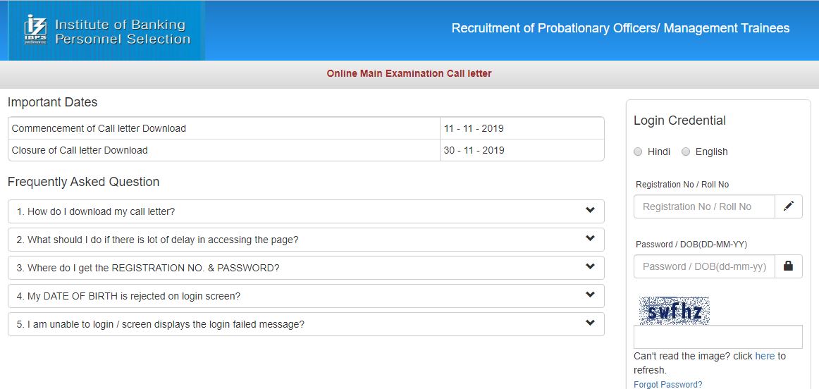 ಐಬಿಪಿಎಸ್ ಪಿಓ 2019ರ ಪ್ರಮುಖ ಪರೀಕ್ಷೆಯ ಪ್ರವೇಶ ಪತ್ರ ಡೌನ್ಲೋಡ್ ಮಾಡುವುದು ಹೇಗೆ ?: