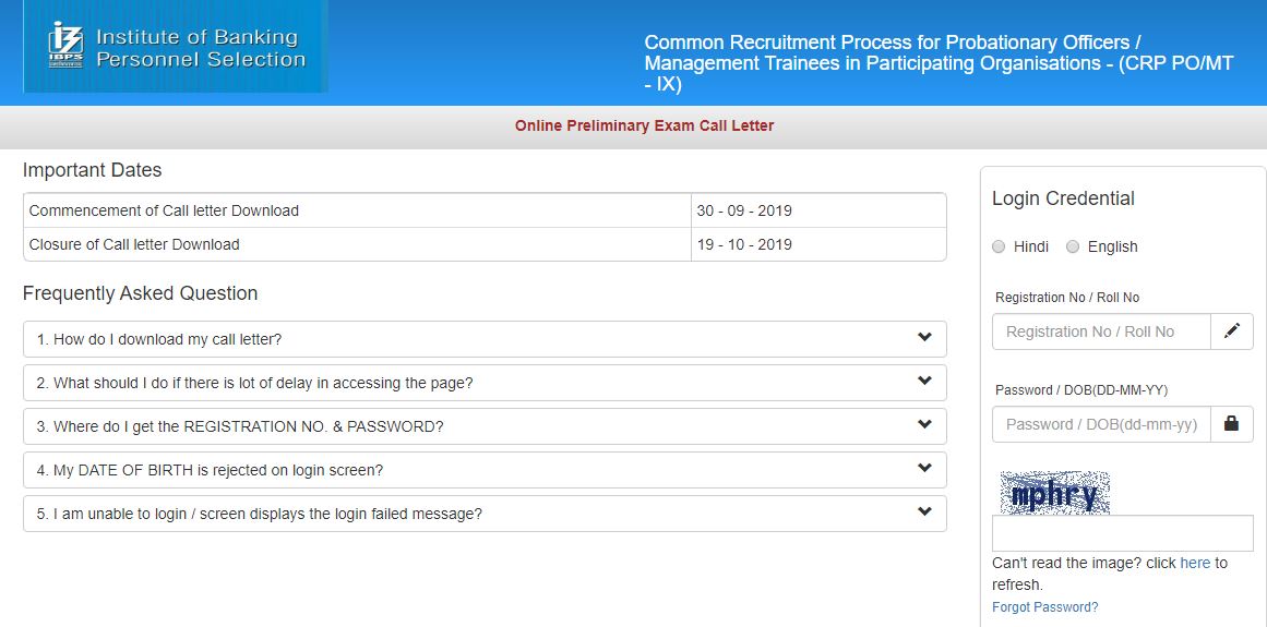 ಐಬಿಪಿಎಸ್ ಪಿಓ ಪ್ರಿಲಿಮಿನರಿ ಪರೀಕ್ಷೆಗೆ ಹಾಜರಾಗಲಿರುವ ಅಭ್ಯರ್ಥಿಗಳು ಪ್ರವೇಶ ಪತ್ರವನ್ನು ಅಕ್ಟೋಬರ್ 19,2019ರೊಳಗೆ ಡೌನ್ಲೋಡ್ ಮಾಡಿಕೊಳ್ಳಬಹುದಾಗಿದ್ದು, ಡೌನ್ಲೋಡ್ ಮಾಡಿಕೊಳ್ಳುವುದು ಹೇಗೆ ಎನ್ನುವುದನ್ನು ತಿಳಿಯಲು ಮುಂದೆ ಓದಿ.