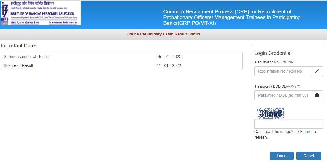 ಇನ್ಸ್ಟಿಟ್ಯೂಟ್ ಆಫ್ ಬ್ಯಾಂಕಿಂಗ್ ಪರ್ಸನೆಲ್ ಸೆಲೆಕ್ಷನ್ ಬೋರ್ಡ್ ನೇಮಕಾತಿಯ ಸಿಆರ್ಪಿ ಪ್ರೊಬೆಷನರಿ ಅಧಿಕಾರಿ ಅಥವಾ ಮ್ಯಾನೇಜ್ಮೆಂಟ್ ಟ್ರೈನಿ ಹುದ್ದೆಗಳಿಗೆ ಅಭ್ಯರ್ಥಿಗಳನ್ನು ಎರಡು ಹಂತದ ಆನ್ಲೈನ್ ಪರೀಕ್ಷೆಯ ಮೂಲಕ ಆಯ್ಕೆ ಮಾಡಲಾಗುವುದು. ಮೊದಲು ಆನ್ಲೈನ್ ಪ್ರಿಲಿಮಿನರಿ ಪರೀಕ್ಷೆಯನ್ನು ನಡೆಸಲಾಗುವುದು ಇದರಲ್ಲಿ ಉತ್ತೀರ್ಣರಾದ ಅಭ್ಯರ್ಥಿಗಳು ಆನ್ಲೈನ್ ಮುಖ್ಯ ಪರೀಕ್ಷೆಯನ್ನು ಎದುರಿಸಲು ಅರ್ಹರಾಗಿರುತ್ತಾರೆ. ತದನಂತರ ಸಂದರ್ಶನ ಸುತ್ತಿಗೆ ಹಾಜರಾಗಬೇಕಿರುತ್ತದೆ. ಆನ್ಲೈನ್ ಪ್ರಿಲಿಮಿನರಿ ಪರೀಕ್ಷೆಯನ್ನು ಡಿಸೆಂಬರ್ 4,2021 ರಿಂದ ಡಿಸೆಂಬರ್ 11,2021ರ ವರೆಗೆ ನಡೆಸಲಾಗಿದೆ. ವರದಿಯ ಪ್ರಕಾರ ಪರೀಕ್ಷೆಗೆ ೫ ಲಕ್ಷ ಅಭ್ಯರ್ಥಿಗಳು ನೊಂದಾಯಿಸಿಕೊಂಡಿದ್ದರು. ಇದೀಗ ಪ್ರಿಲಿಮಿನರಿ ಪರೀಕ್ಷೆಯ ಫಲಿತಾಂಶ ಪ್ರಕಟವಾಗಿದ್ದು, ಫಲಿತಾಂಶ ವೀಕ್ಷಿಸುವುದು ಹೇಗೆ ಎನ್ನುವುದನ್ನು ತಿಳಿಯಲು ಮುಂದೆ ಓದಿ.