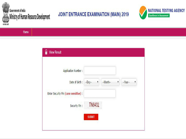 ಸ್ಟೆಪ್ 2: ಹೋಂ ಪೇಜ್ನಲ್ಲಿ ಕಾಣಿಸುವ "JEE (Main)April 2019 NTA Score" ಲಿಂಕ್ ಮೇಲೆ ಕ್ಲಿಕ್ ಮಾಡಿ