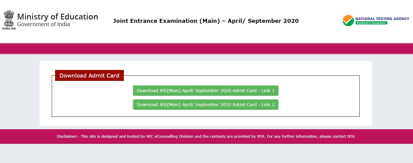 ಸ್ಟೆಪ್ 2: ಹೋಂ ಪೇಜ್ನಲ್ಲಿ ಲಭ್ಯವಿರುವ "Download Admit Card of JEE (Main) April/September -2020" ಬಟನ್ ಮೇಲೆ ಕ್ಲಿಕ್ ಮಾಡಿ
