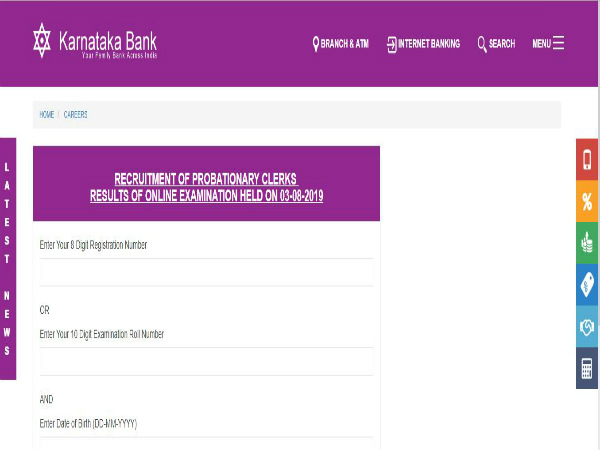 ಕರ್ನಾಟಕ ಬ್ಯಾಂಕ್ ಪ್ರೊಬೆಷನರಿ ಕ್ಲರ್ಕ್ ಹುದ್ದೆಗಳ ನೇಮಕಾತಿಗಾಗಿ ಜುಲೈ 20,2019 ರೊಳಗೆ ಅರ್ಜಿಗಳನ್ನು ಆಹ್ವಾನಿಸಲಾಗಿತ್ತು. ಈ ಹುದ್ದೆಗಳಿಗೆ ಅಭ್ಯರ್ಥಿಗಳನ್ನು ಲಿಖಿತ ಪರೀಕ್ಷೆ ಮತ್ತು ಸಂದರ್ಶನದ ಮೂಲಕ ಆಯ್ಕೆ ಮಾಡಲಿದ್ದು, ಇದೀಗ ಪರೀಕ್ಷಾ ಫಲಿತಾಂಶವನ್ನು ಅಧಿಕೃತ ವೆಬ್ಸೈಟ್ನಲ್ಲಿ ಬಿಡುಗಡೆ ಮಾಡಲಾಗಿದೆ. ಪರೀಕ್ಷೆಗೆ ಹಾಜರಾದ ಅಭ್ಯರ್ಥಿಗಳು ತಮ್ಮ ಫಲಿತಾಂಶವನ್ನು ಇದೀಗ ಚೆಕ್ ಮಾಡಿಕೊಳ್ಳಬಹುದು.