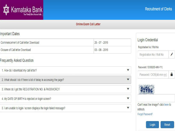 ಕರ್ನಾಟಕ ಬ್ಯಾಂಕ್ ಪ್ರೊಬೆಷನರಿ ಕ್ಲರ್ಕ್ ಹುದ್ದೆಗಳ ಆನ್ಲೈನ್ ಪರೀಕ್ಷಾ ಪ್ರವೇಶ ಪತ್ರವನ್ನು ಡೌನ್ ಲೋಡ್ ಮಾಡಲು ಕೆಳಗಿನ ಸ್ಟೆಪ್ಸ್ ಫಾಲೋ ಮಾಡಿ: