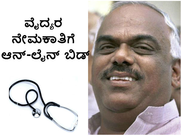 ಸರ್ಕಾರಿ ಆಸ್ಪತ್ರೆಗಳಲ್ಲಿ ವೈದ್ಯರುಗಳ ಕೊರತೆ ನೀಗಿಸಲು ಅನ್-ಲೈನ್ ಬಿಡ್ ಮಾಡುವುದಾಗಿ ಆರೋಗ್ಯ ಸಚಿವ ರಮೇಶ್ ಕುಮಾರ್ ತಿಳಿಸಿದ್ದಾರೆ.