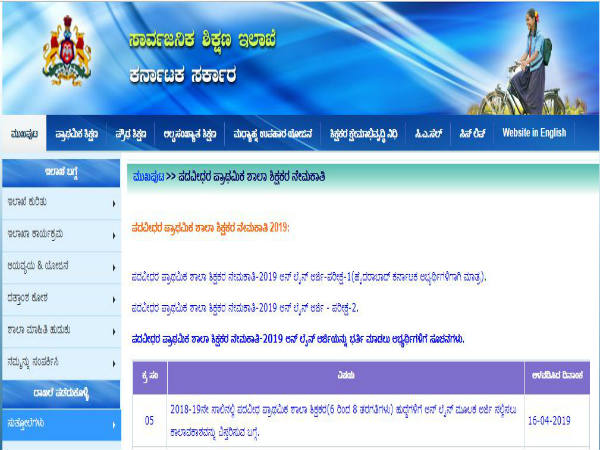 ಸ್ಟೆಪ್ 1: ಅಭ್ಯರ್ಥಿಗಳು ಕರ್ನಾಟಕ ಸಾರ್ವಜನಿಕ ಶಿಕ್ಷಣ ಇಲಾಖೆಯ ಅಧಿಕೃತ ವೆಬ್ಸೈಟ್ http://www.schooleducation.kar.nic.in/ ಗೆ ಹೋಗಿ