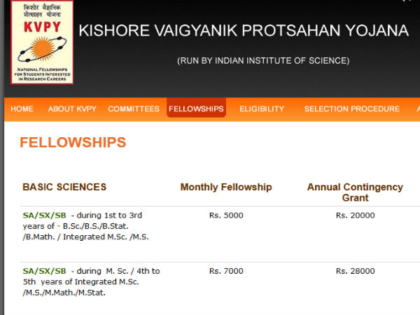 2017 ನೇ ಸಾಲಿನ ಕೆವಿಪಿವೈ ಫೆಲೋಶಿಪ್ ಗಾಗಿ ಪಿಯುಸಿಯಲ್ಲಿ ಕಲಿಯುತ್ತಿರುವ ಮತ್ತು ಪಿಯುಸಿ ಪಾಸ್ ಆಗಿ ಪದವಿಗಳಿಗೆ ನೋಂದಾಯಿಸಿರುವ ಅಭ್ಯರ್ಥಿಗಳು ಅರ್ಜಿಗಳನ್ನು ಸಲ್ಲಿಸಬಹುದಾಗಿದೆ.