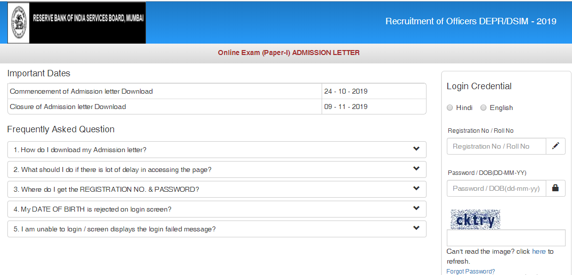 ಆರ್ಬಿಐ ಒಟ್ಟು 199 ಹುದ್ದೆಗಳನ್ನು ಭರ್ತಿ ಮಾಡಲು ಅಕ್ಟೋಬರ್ 11,2019ರೊಳಗೆ ಅರ್ಜಿಗಳನ್ನು ಆಹ್ವಾನಿಸಿತ್ತು. ಅರ್ಜಿದಾರರನ್ನು ಲಿಖಿತ ಪರೀಕ್ಷೆ ಮತ್ತು ಸಂದರ್ಶನದ ಮೂಲಕ ಆಯ್ಕೆಮಾಡಲಾಗುವುದು ಎಂದು ತಿಳಿಸಲಾಗಿದ್ದು, ಇದೀಗ ಪರೀಕ್ಷಾ ಪ್ರವೇಶ ಪತ್ರವನ್ನು ಬಿಡುಗಡೆ ಮಾಡಿರುತ್ತದೆ.ಅಭ್ಯರ್ಥಿಗಳು ನವೆಂಬರ್ 9,2019ರೊಳಗೆ ಡೌನ್ಲೋಡ್ ಮಾಡಿಕೊಳ್ಳಬಹುದು.