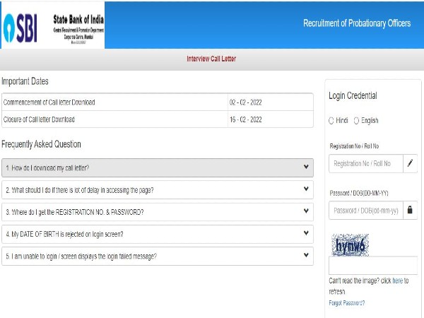 ಸ್ಟೇಟ್ ಬ್ಯಾಂಕ್ ಆಫ್ ಇಂಡಿಯಾ 2021ರ ನೇಮಕಾತಿಯ ಪ್ರೊಬೆಷನರಿ ಅಧಿಕಾರಿ ಹುದ್ದೆಗಳಿಗೆ ಅಭ್ಯರ್ಥಿಗಳ ಆಯ್ಕೆಯನ್ನು ಆನ್ಲೈನ್ ಪ್ರಿಲಿಮಿನರಿ ಪರೀಕ್ಷ, ಮುಖ್ಯ ಪರೀಕ್ಷೆ ಮತ್ತು ಸಂದರ್ಶನ ಮೂಲಕ ಮಾಡಲಾಗುತ್ತದೆ. ಪ್ರಿಲಿಮಿನರಿ ಪರೀಕ್ಷೆಯಲ್ಲಿ ಅರ್ಹತೆ ಪಡೆದ ಅಭ್ಯರ್ಥಿಗಳು ಮುಖ್ಯ ಪರೀಕ್ಷೆಗೆ ಹಾಜರಾಗಲು ಅರ್ಹರಾಗಿರುತ್ತಾರೆ. ಮುಖ್ಯ ಪರೀಕ್ಷೆಯಲ್ಲಿ ಅರ್ಹತೆ ಪಡೆದ ಅಭ್ಯರ್ಥಿಗಳು ಇದೀಗ ಸಂದರ್ಶನ ಪ್ರಕ್ರಿಯೆಗೆ ಹಾಜರಾಗಬಹುದಾಗಿದ್ದು, ಸಂದರ್ಶನ ಪ್ರಕ್ರಿಯೆಗೆ ಹೋಗುವ ಅಭ್ಯರ್ಥಿಗಳು ಪ್ರವೇಶ ಪತ್ರವನ್ನು ಡೌನ್ಲೋಡ್ ಮಾಡಲು ಫೆಬ್ರವರಿ 16,2022ರ ಕಾಲಾವಕಾಶವಿರುತ್ತದೆ. ಅಭ್ಯರ್ಥಿಗಳು ಪ್ರವೇಶ ಪತ್ರ ಡೌನ್ಲೋಡ್ ಮಾಡುವುದು ಹೇಗೆ ಎನ್ನುವುದನ್ನು ತಿಳಿಯಲು ಮುಂದೆ ಓದಿ.