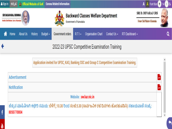 ಅರ್ಜಿ ಸಲ್ಲಿಸಲು ವೆಬ್ಸೈಟ್ ವಿಳಾಸ: https://sw.kar.nic.in/index.aspx