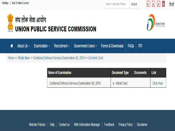 ಸ್ಟೆಪ್ 2: ನಂತರ ಹೋಂ ಪೇಜ್ನಲ್ಲಿ ಲಭ್ಯವಿರುವ "e-Admit Card : Combined Defence Services Examination II 2019" ಮೇಲೆ ಕ್ಲಿಕ್ ಮಾಡಿ