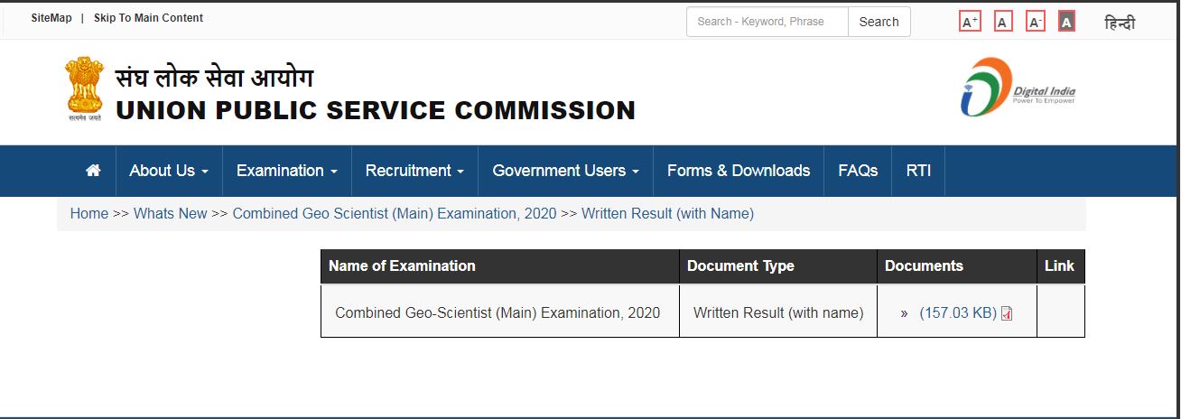 ಯುಪಿಎಸ್ಸಿ ಕಂಬೈನ್ಡ್ ಜಿಯೋ-ಸೈಂಟಿಸ್ಟ್ ಹುದ್ದೆಗಳ ಮುಖ್ಯ ಪರೀಕ್ಷಾ ಫಲಿತಾಂಶ ವೀಕ್ಷಿಸಲು ಕೆಳಗಿನ ಸ್ಟೆಪ್ಸ್ ಫಾಲೋ ಮಾಡಿ:
