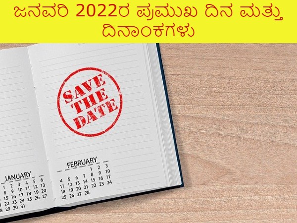 ಜನವರಿ 2022ರ ಪ್ರಮುಖ ದಿನ ಮತ್ತು ದಿನಾಂಕಗಳ ಪಟ್ಟಿ :